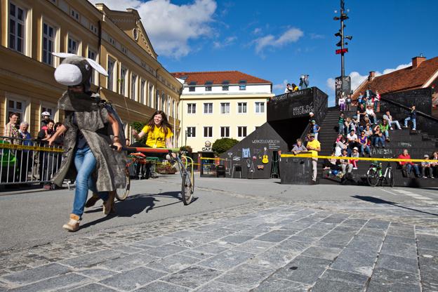 Seit über 100 Jahren findet in Fagagna das traditionelle Eselrennen am Hauptplatz statt. Fagagna? Fagagna ist ein kleiner Ort im italienischen Friaul und Partnerstadt von Murau. Heuer soll das Eselrennen erstmals auch am Schillerplatz stattfinden. Bei der steirischen Version wird der auf einem Sulky sitzende Reiter von zwei Personen im Eselskostüm gezogen. Das Rennen wird moderiert von Kunstkommunikator Lorenz Seidler alias eSeL. 3-köpfige Teams können sich beim Festivalzentrum zum Rennen anmelden. Der Hauptpreis ist eine Tagesreise nach Fagagna, zu dem am ersten Septembersonntag stattfindenden Eselrennen.